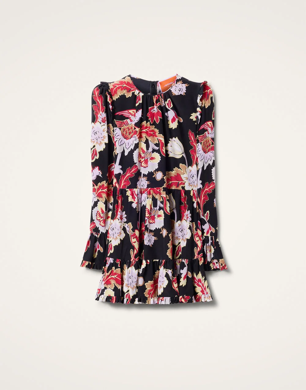 What happens when you take one of La DoubleJ's most beloved, sophisticated silhouettes, and take it up a notch (literally)? you get the Short Visconti Dress - same mock neck with ruching around the decollete, same slightly gathered shoulders and tapered sleeves, just now with a slightly shorter hem for added sensuality. Details & Fit - Crepe de chine - Fitted bodice and waist - Ruched bracelet sleeves - Mock neck - Skirt hit just below the knee - 100% Made in Italy - Composition: 100% silk - The model is 180 cm / 5′ 11″ tall and wears a size S