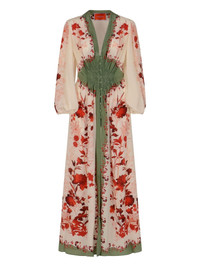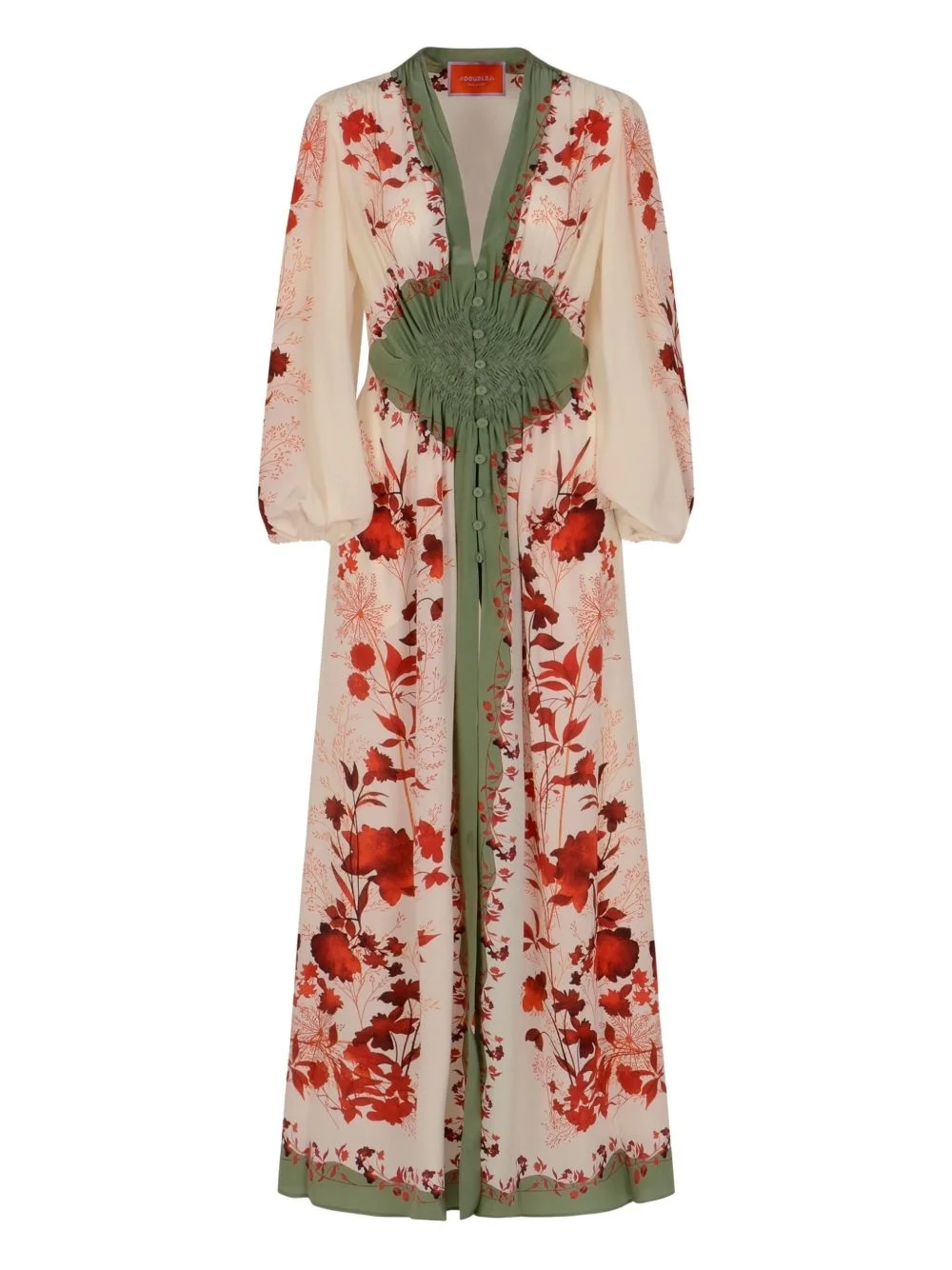 Camerino silk maxi dress Highlights - Multi-color - Floral print - Smocked bodice - Button front Imported Composition Silk 100% Washing instructions Read Manufacturer Guidelines