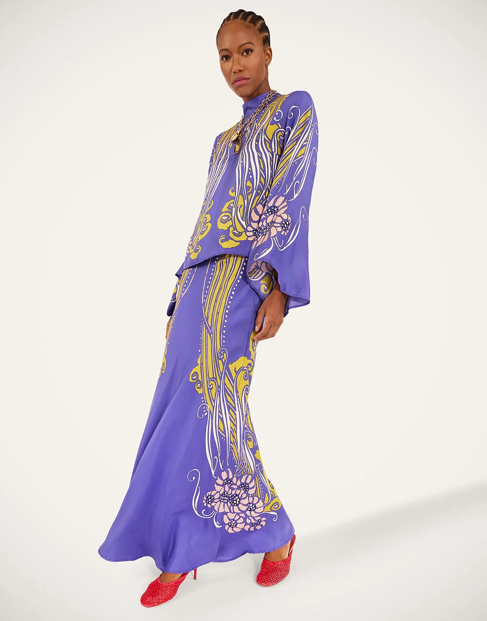 Throw all your other maxi skirts out, you’ve found the one. Super fitted through the hips, this high-waisted beauty flows out into a fluted soft mermaid hem for a curve-tastic finish. Inspired by our fave Ancient Greek femme fatale, Medusa, our Atlantis print is meticulously placed by hand on lustrous Italian silk to wow your crowd night or day. Details & Fit - Silk - High waisted - Fitted through hips - Placed print - Mermaid hem - Made in Italy - Composition: 100% Silk - The model is 180 cm / 5′ 11″ tall and wears a size S