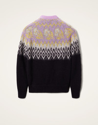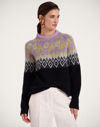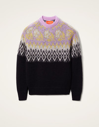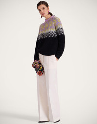 To create the perfect apres-ski sweater, we took the classic Fair Isle silhouette and reimagined it through our ebullient Italian lens. Crafted from a sumptuous Alpaca and mohair blend, it’s the only thing you’ll want to wrap yourself up in post-slalom. Through it over your ski top for a slope side lunch, or with jeans as you hit the Chamonix streets for a little retail therapy. Details & Fit - Mohair alpaca blend - Crew neck sweater - Hits at hip - Ribbed hem - Composition: 42% Alpaca Wool 32% Polyamide 13% Mohair 13% Wool - The model is 180 cm / 5′ 11″ tall and wears a size S