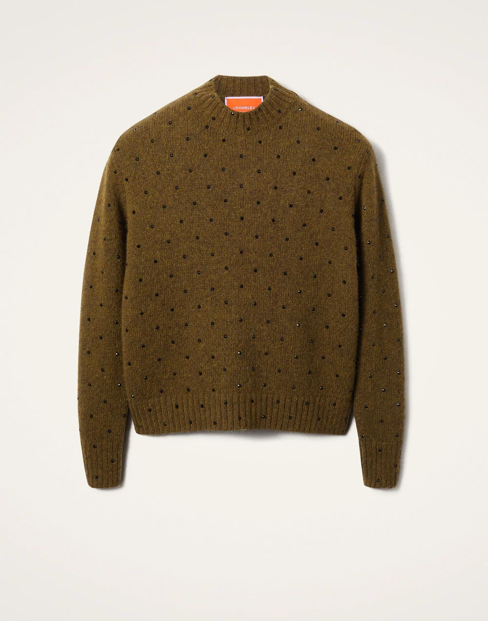 Who says your jewelry box gets to have all the fun. Ad star power to your sweater game with this Alpaca and Merino wool blended beauty embroidered with crystals across it. It hits just below the hip and is a little oversized but in a slim straight cut, meaning it looks marvellous over jeans or a floaty skirt with sneakers. Details & Fit - Merino alpaca blend - Crew neck sweater - Hits below hip - Embroidered gems - Ribbed hem - Composition: 56% Alpaca Wool 34% Polyamide 10% Merino Wool - The model is 178 cm / 5′ 10″ tall and wears a size S