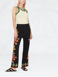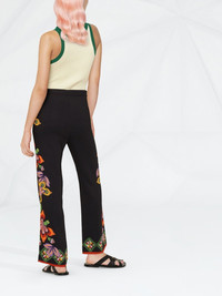 Stretch floral-print straight trousers Cut from stretch jersey, these La DoubleJ trousers were designed for comfort, tailored for a mid-rise fit that falls to a straight leg. Although subtle, the label adds a signature cheerful touch through the floral print at the sides. Made in Italy Composition Viscose 96%, Spandex/Elastane 4% SIZE & FIT Model measurements Height 5 ft 10 in(1.78 m) Bust/Chest 32.28 in(82 cm) Hips 35.03 in(89 cm) Waist 23.22 in(59 cm) FittingInformation This piece fits true to size. We recommend you get your regular size Designed to be fitted at the waist and hips, loose over the leg Made with a mid-weight non-stretch fabric