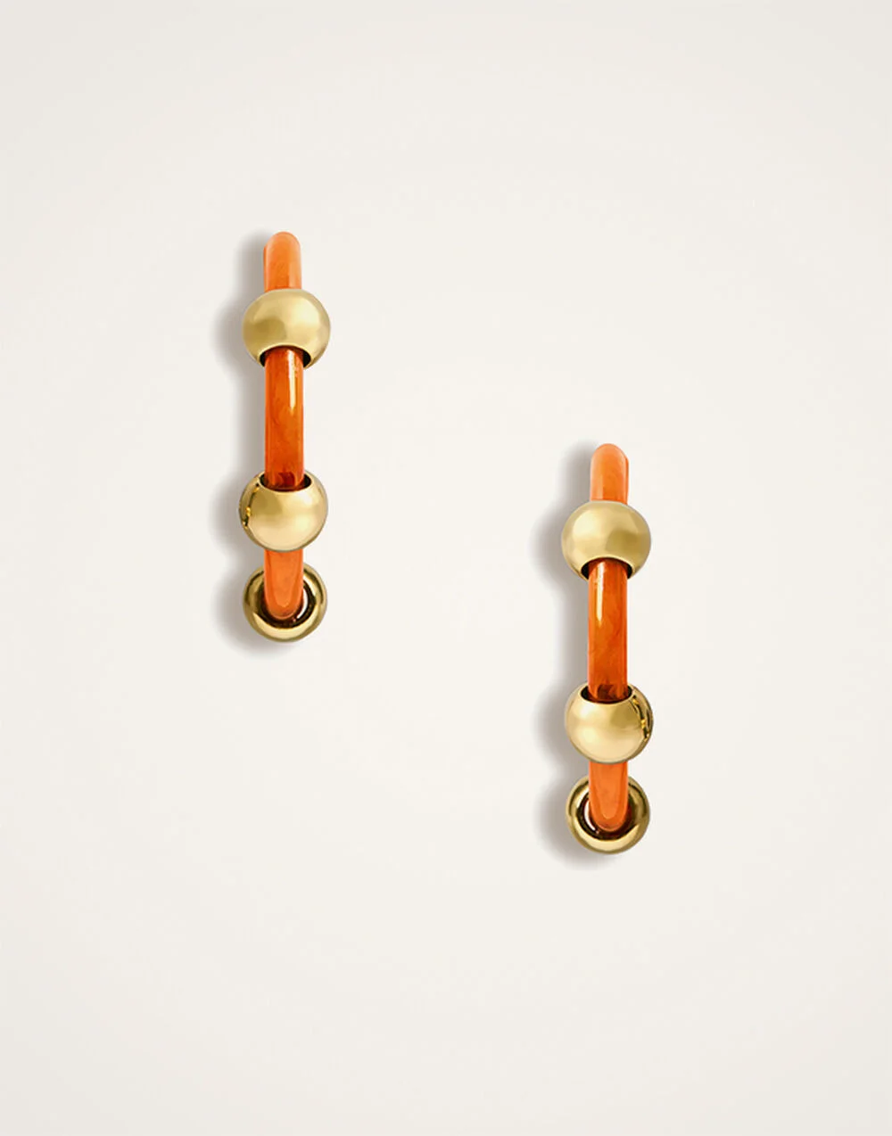 Hoop, hoop, hooray! These stunning hoop earrings arrive in colorful studded resin (of course we added studs, we can't help ourselves!) to add a little drama to your everyday outfit. Details & Fit - Resin hoop earrings with brass studs - Butterfly Closure - composition: 98% Acrylic 2% Steel - Made in Italy