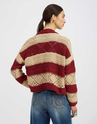 Over a bikini or with a white T-shirt and jeans - in these Mediterranean hues, our Bolero knit sings of Italian summer however it’s styled. It’s crafted in our chunky rope yarn that is thick but not heavy with a hint structure which means it’ll effortlessly double as a cool cover-up for special RSVPs. A cropped hem and decollete-flashing neckline only boost its sunshine appeal. Details & Fit - Filato rope yarn - Cropped shape - Bolero silhouette without fastenings in front - Seamless design - 100% Made in Italy - Composition: 55% Cotton 45% Polyamide - Garment length: 50cm