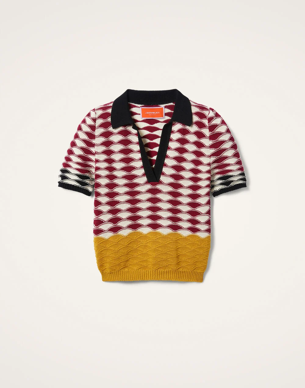 Oh, how we love a polo for primavera. Just like her cousin, the Sunset Tee, this knit polo has gorgeously dramatic sleeves that cinch at the elbow for an alluring shape. Wear this with your favourite pleated skirt or matching Sunset Pants for a crave worthy co-ord. Details & Fit - Knit polo - Polo collar - Bold, oversized sleeve - Cinched cuff at elbow - Made in Italy - Composition: 100% cotton - The model is 180 cm / 5′ 11″ tall and wears a size S