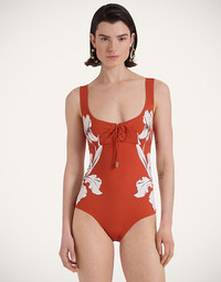 When an acqua to aperitivo situation calls, prepare to stun in the Sunset Suit. Now in a sleeveles version, this swimsuit has a flattering scoop neck and tie detail in the front that is worthy of your ready-to-wear wardrobe, yet it’s cut in functional Italian-made Lycra that is the best in the biz. Winning more points on the luxury chart is the exquisitely hand-placed print by our Italian artisans. Perfect for lounging wherever you want to be seen, slip on the matching Sunset Skirt to take it out-out after. Details & Fit - Supreme Lycra - Hand-placed print - Scoop neck - Tie detail in front - Medium coverage on butt - 100% Made in Italy - Composition: 74% Polyamide 26% Elastane - The model is 178 cm / 5′ 10″ tall and wears a size S