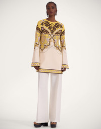 A short but chic cocktail dress ready to enter your party era. Whatever celebratory occasion you’re dressing up for this season, the Mini Supremes aims to flatter, with its long fluted sleeves and thigh-sitting silhouette expertly cut on the bias in our luxurious Italian satin. We’re all about this dazzling Dazed print (which we'll be rocking at breakfast as well as at the ball 'cause we're obsessed with it.) Details & Fit - Satin - Hand-placed print - Round neck - Pockets - Flared sleeve - Mini hemline - 100% Made in Italy - Composition: 96% viscose 4% elastane - The model is 178 cm / 5′ 10″ tall and wears a size S