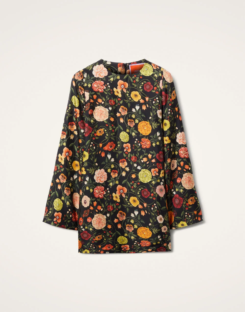 A short but chic cocktail dress ready to enter your party era. Whatever celebratory occasion you’re dressing up for this season, the Mini Supremes aims to flatter, with its long fluted sleeves and thigh-sitting silhouette expertly cut on the bias in our luxurious Italian silk. We’re all about this exquisite Renaissance-inspired Oltrarno print (which we'll be rocking at breakfast as well as at the ball 'cause we're obsessed with it.) Details & Fit - Silk twill - Hand-placed print - Round neck - Pockets - Flared sleeve - Mini hemline - 100% Made in Italy - Composition: 100% silk - The model is 181 cm / 5′ 11.3″ tall and wears a size S