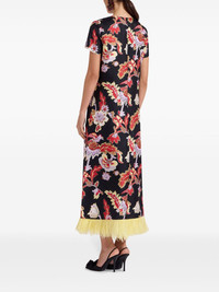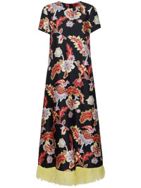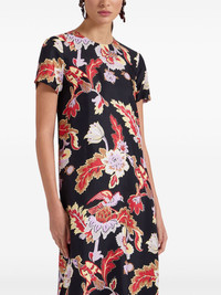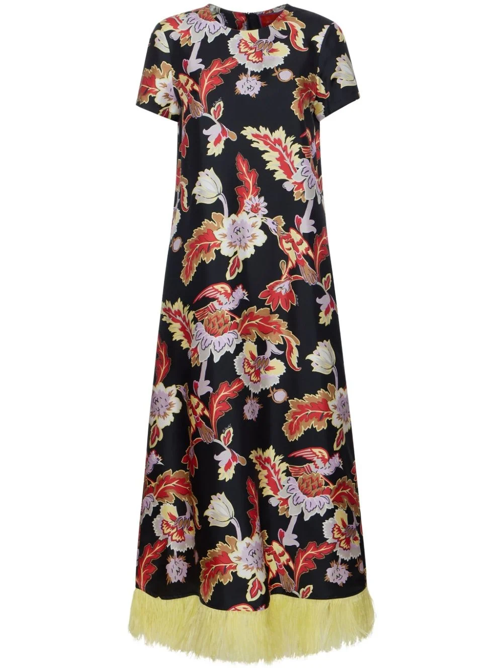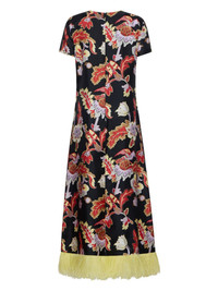 Swing midi dress Highlights - Black - Concealed rear zip fastening - All-over floral print - Crew neck - Short sleeves Made in Italy Composition Silk 98%, Ostrich Feather 2%