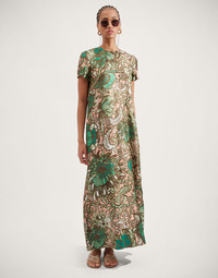You never forget your first love and this is the story of our Swing Dress. Our very first model, the easy silhouette will take you from Sunday breakfast to a snappy desk job and all the way through cocktails. Our Swing is slim in the shoulders and generous in the hips, a classic T-shirt silhouette that falls into an A-line hitting just above the ankles. For those of you insisting on more shape at the waist, do as J.J. does and belt it with a LaDoubleJ scarf. Details & Fit - Unlined silk twill from Lake Como - Slim in the shoulders, generous in the hips - Classic T-shirt silhouette - Falls into an A-line - Hits just above the ankles - Hidden side slit pockets - Concealed back zipper - 100% Made in Italy - Composition: 100% Silk - The model is 177 cm tall and wears a size S - Garment length: 135cm