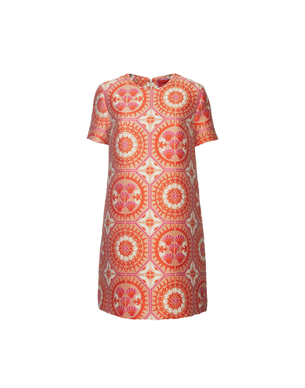 Take our signature Swing Dress, give it a generous chop and voila! You’ve got the Mini Swing. The shorter version of this easy T-shirt silhouette falls around mid-thigh, perfect for La DoubleJ’s more petite fans or for showing off your legendary legs. Crafted for cocktail parties and date nights in our structured Sun jacquard, style with polished pins and white sneakers now, black tights and platforms later. Details & Fit - Jacquard - Slim in the shoulders, generous in the hips - Classic T-shirt silhouette - Falls into an A-line - Mini length - Hidden side slit pockets - Concealed back zipper - 100% Made in Italy - Composition: 72% Polyester 21% Cotton 4% Silk 3% Polyamide - The model is 180 cm tall and wears a size S - Garment length: 80cm