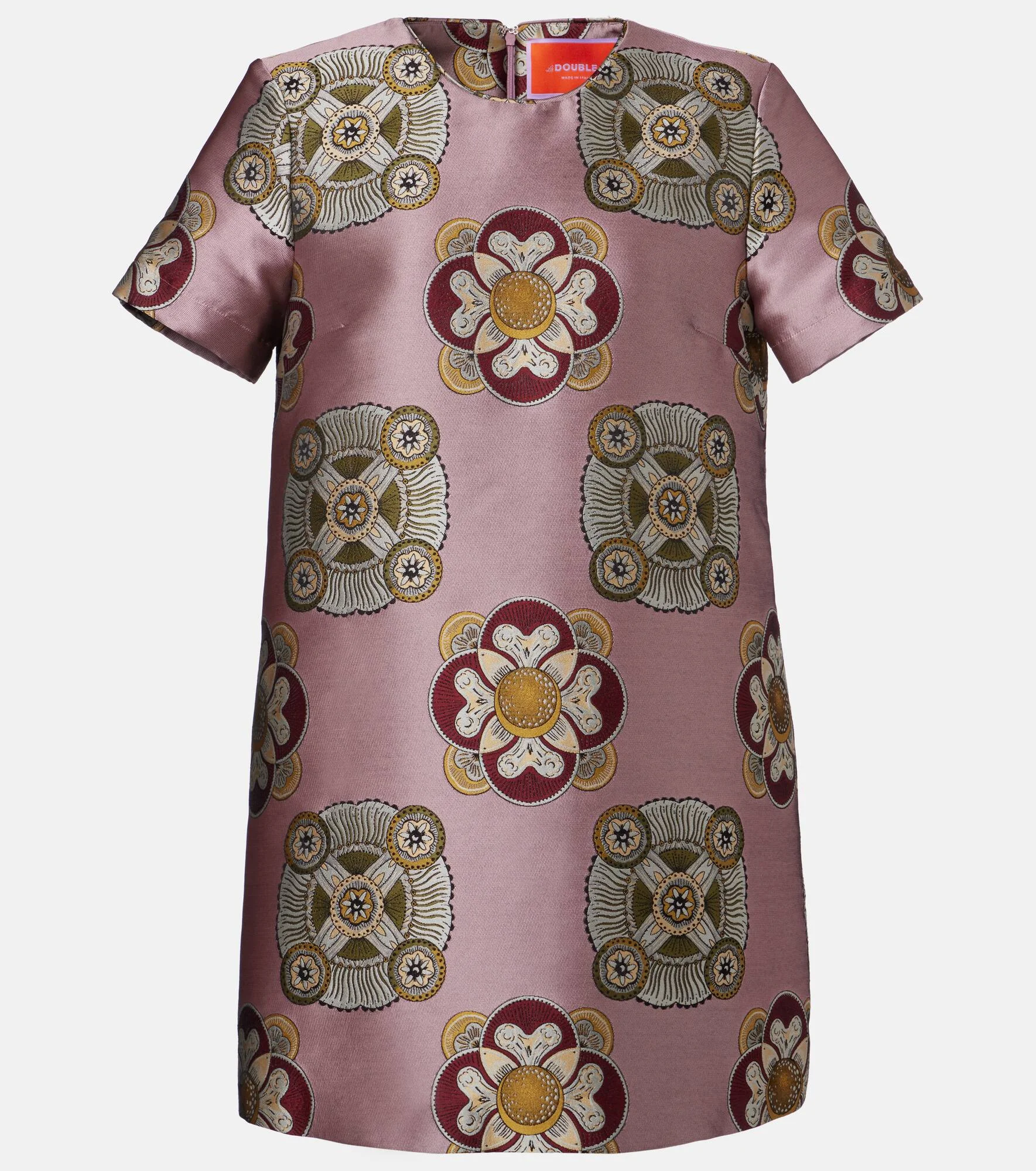 The Swing minidress from La DoubleJ is perfect for sunny occasions. Crafted from striking satin jacquard for a charming, textured effect, it combines comfort and sophistication with its effortless T-shirt silhouette. Product Details - Material: 72% polyester, 28% silk - Care instructions: dry clean - Made in Italy - Designer color name: Nucleus - Item color: pink, multicolor - Lining: 100% polyester - Closure: zip and hook fastening - Item number: P01084438 Size & Fit - True to size - Designed for a loose fit - Non-stretchy fabric - The model seen in the picture is 178cm-5'10" and wearing a size XS
