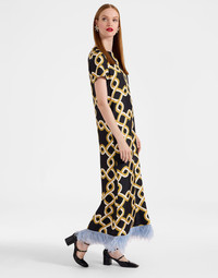 You never forget your first love and this is the story of our Swing Dress. LDJ’s very first model, this easiest of silhouettes is cut slim in the shoulders, generous in the hips, to be adored by babes of all ages. Done in our fluid silk twill that doesn’t cling a bit, it’s finished with a fabulous contrast feather trim that honestly finds a fan club wherever you take it. With its understated T-shirt silhouette, anything goes. Details & Fit - Silk twill - Hemline trimmed with ostrich feathers - Slim in the shoulders, generous in the hips - Classic T-shirt silhouette - Falls into an A-line - Hits just above the ankles - Hidden side slit pockets - Concealed back zipper - 100% Made in Italy - Composition: 98% Silk 2% Ostrich Feathers - The model is 177 cm / 5′ 9.7″ tall and wears a size S