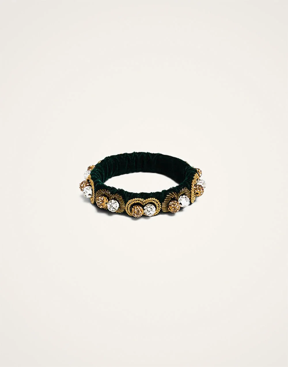When you want just a little extra without being too….well, “extra”. No-one does understated opulence better than the Italians and the Tesoro Bracelet is the proof, crafted from velvet embroidered with pearls. Opt for the single strand for just a bit of bling or layer it up with the double strand version for more impact. Details & Fit - Single strand Bracelet - Velvet embroidered with pearls - 100% Polyester - Made in India