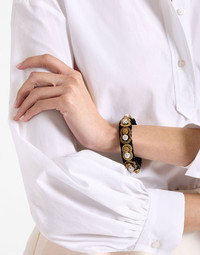 When you want just a little extra without being too….well, “extra”. No-one does understated opulence better than the Italians and the Tesoro Bracelet is the proof, crafted from velvet embroidered with pearls. Opt for the single strand for just a bit of bling or layer it up with the double strand version for more impact. Details & Fit - Single strand Bracelet - Velvet embroidered with pearls - 100% Polyester - Made in India