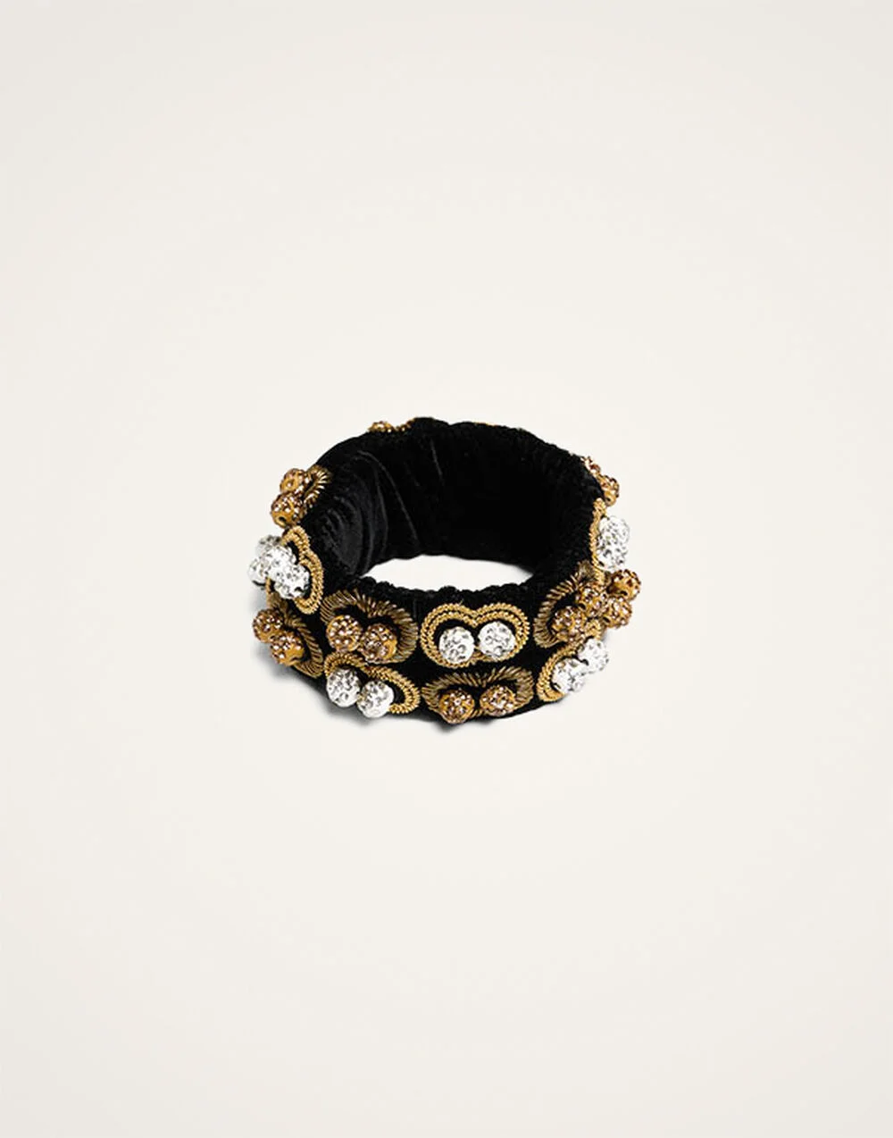When you want just a little extra without being too….well, “extra”. No-one does understated opulence better than the Italians and the Tesoro Bracelet is the proof, crafted from velvet embroidered with pearls. Opt for the single strand for just a bit of bling or layer it up with the double strand version for more impact. Details & Fit - Double strand Bracelet - Velvet embroidered with pearls - 100% Polyester - Made in India