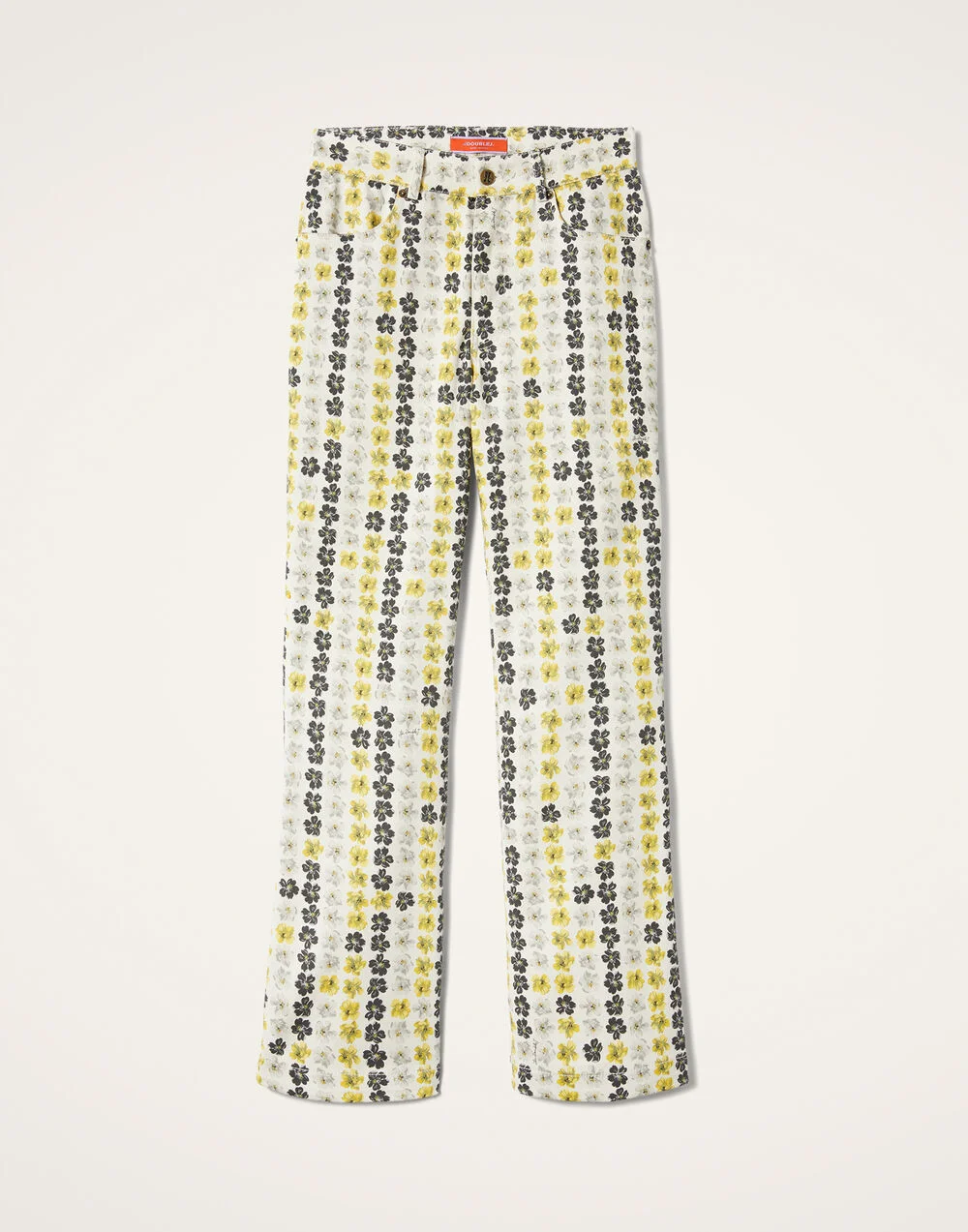 Haven’t you heard? Shins are in, sister! We took our best-selling flare jean and cropped it - same super high waist and booty-boosting shape, same perfect amount of stretch, now with the mood-boosting designs of our latest collections, applied using an intricate laser-print technique. Details & Fit - Laser-printed stretch denim - High waist - Button fly and zip closure - Wide flare - Pockets in front with fifth internal piccolo pocket - Embroidered back pockets - 100% Made in Italy - Composition: 98% Cotton 2% Elastane - The model is 178 cm / 5′ 10″ tall and wears a size S