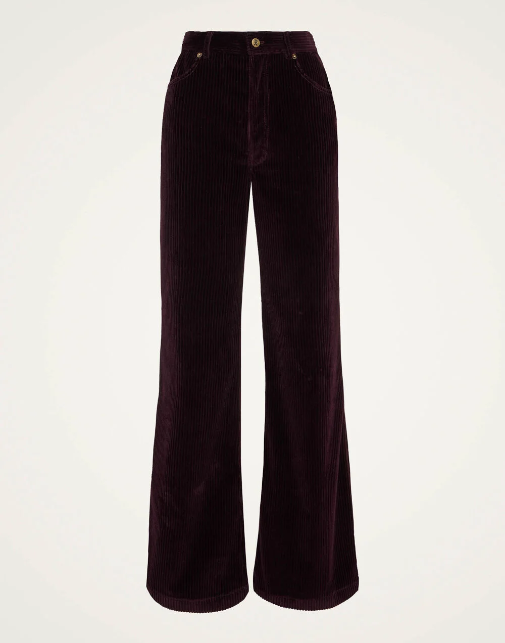 Designed for those looking to elevate the everyday, these are not your average flares. With a super high waist that hugs your curves in all the right places, these are a modern take on a retro classic, cut in a beautiful solid velvet corduroy with embroidered back pockets. Falling straight to the knee before opening up into a wide, romantic bell-bottom, these beauties have a little stretch built in, so you can channel your inner Studio64 without diminishing their booty-boosting shape. Details & Fit - High waist - Button fly and zip closure - Velvet corduroy - Wide flare - Pockets in front with fifth internal piccolo pocket - Embroidered back pockets - 100% Made in Italy - Composition: 98% Cotton 2% elastane