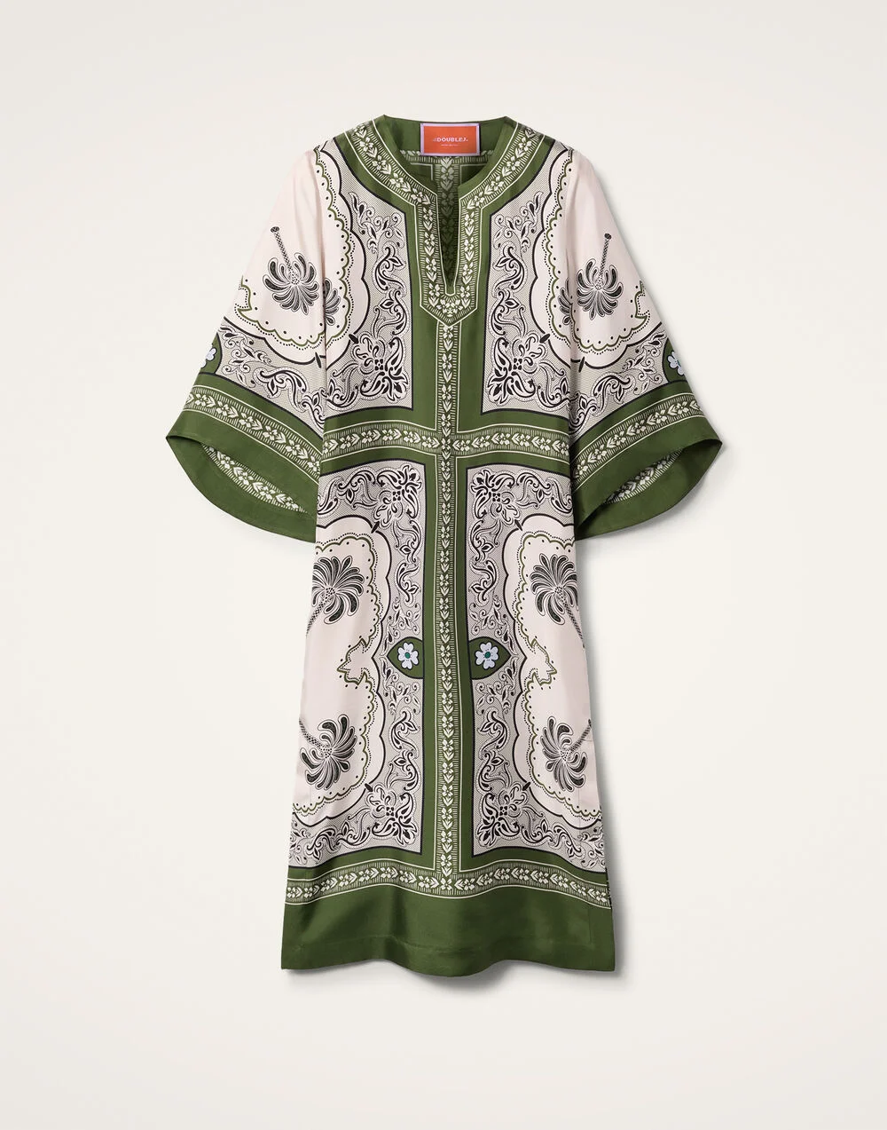 Not all kaftans are created equal. This all-figure flattering addition to our kaftan family arrives in luxurious Italian silk twill, with bow sleeves for ultimate bohemian elegance. A more square structure than her voluminous sisters, but floatier than her cotton counterpart, this is an elevated take on a classic summer shape. Looking to add some Slim Aarons energy to your summer? Just add earrings. Details & Fit - Square silhouette - Silk twill - Pockets - Mid-calf hem - Bow sleeve - Contrast lining - 100% made in Italy - Composition: 100% silk - The model is 180 cm / 5′ 11″ tall and wears a size S