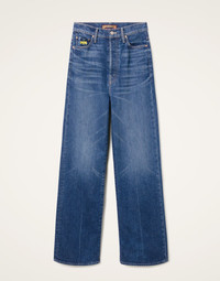 Blending Italian maximalism and California cool, La DoubleJ and Mother have joined forces to create some chicest-leg-lengthening denim for their Ciao Mamma! collaborative collection. These super high-waisted stunners feature a loose, wide leg fit giving an air of retro romance to its figure-flattering form. And that tiny yellow dragonfly embroidered onto the front pocket? Consider this symbol of joy and transformation our little good luck charm to you woven directly into your wardrobe. Details & Fit - LDJ x MOTHER collection - Super high-waisted jeans - Semi-rigid SUPERIOR denim - Wide leg fit - 32-inch inseam - Button and zip closure - Embroidered dragonfly in front pocket - Composition: 98% Cotton 2% Elastane - The model is 177 cm / 5′ 9.7″ tall and wears a size S