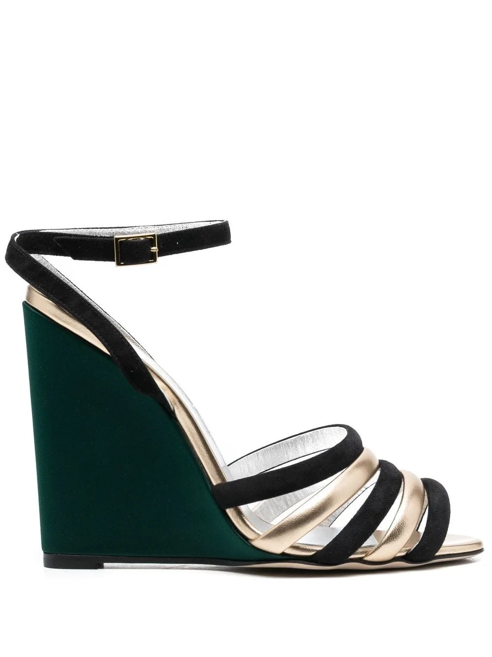 Tones 135mm wedge sandals Inspired by a passion for vintage designs, these La DoubleJ sandals arrive wrapped in buttery printed suede. Metallic leather straps in contrasting tones complete the design, while a sky-scrapping wedge heel lends the style a statement finish. Made in Italy Composition Outer: Calf Leather 100%, Cotton 71%, Polyester 29% Lining: Calf Leather 100% Sole: Calf Leather 100%, Rubber 100%