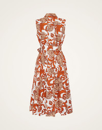As at home on Perry Street as she is strolling through Palermo, the Tootsie is a summer wardrobe wonder you’ll keep in your closet for eternity. A sleeveless straight silhouette with a classic collar, this is timeless day-to-eveniing attire, whose buttons can be opened up completely for a laid back beach look. Intricate, contrast lace panels down the front make this more than a simple everyday staple - minimalists can opt for the colorblocked version while more maximalist dressers can go for the radiant Reef print option, both in crisp 100% Italian cotton. Details & Fit - Sleeveless Midi Dress - Lace panels down front - Buttons down front - Pockets - 100% Made in Italy - Composition: 100% cotton - The model is 180 cm tall and wears a size S - Garment length: 110cm
