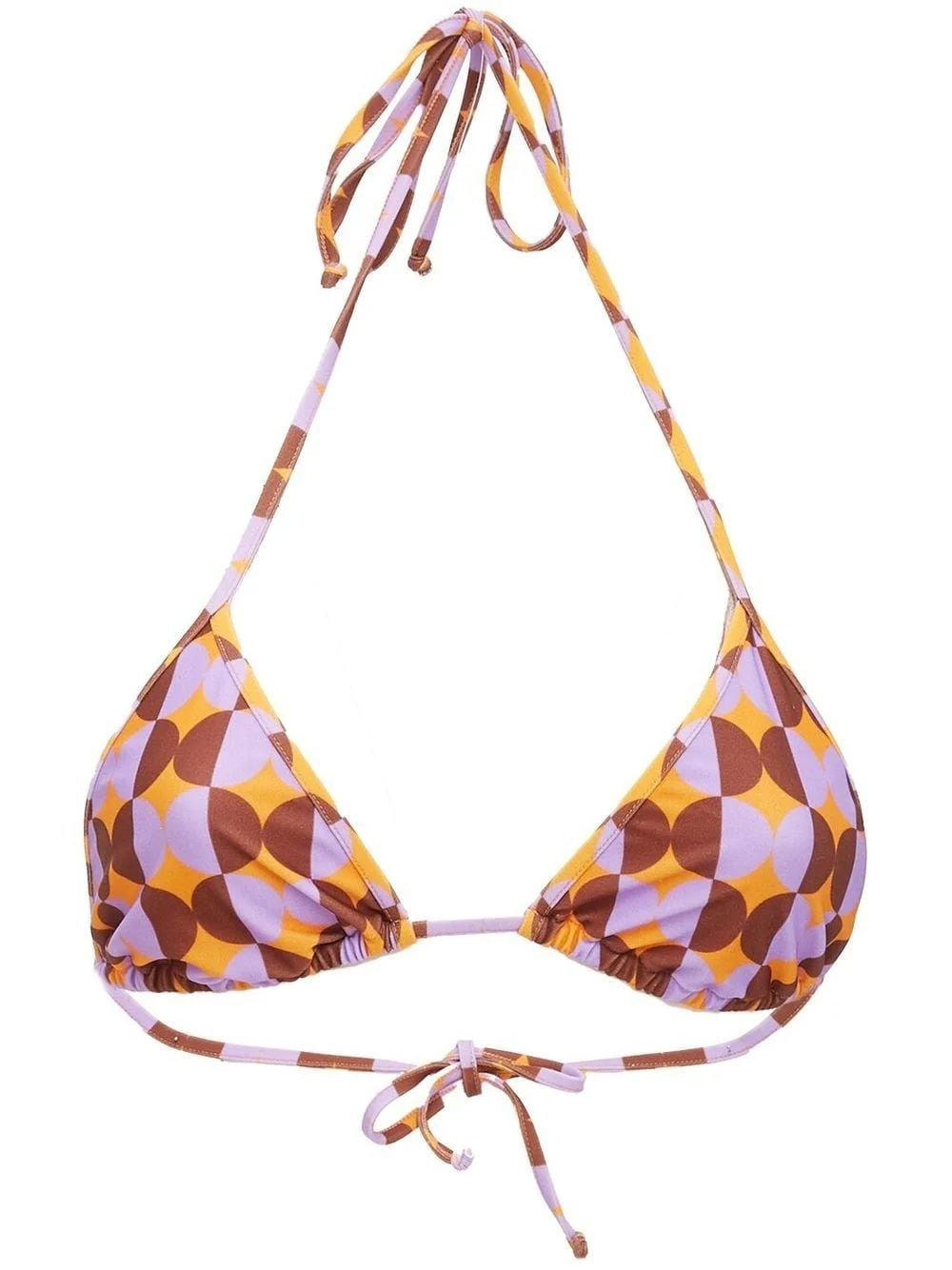 triangle bikini top Crafted from Italian-made lycra, this bikini top from La DoubleJ features triangle cups and adjustable string tie halter and back strap. Standing out thanks to its Mezzaluna Orange motif, this versatile piece can be reversed to reveal a lilac purple lining. Made in Italy Composition Polyamide 80%, Elastane 20%
