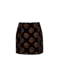 An ode to the swinging ‘60s icon, Twiggy, this panelled mini skirt is a nod to mod. A-line with a flirty front panel and slits on either side, this mini packs major mamma mia! punch. A piped leather border further elevates this already opulent beauty which, crafted in printed Italian jacquard, delivers double takes whether she’s worn with an oversized sweater or our romantic Foulard Shirt and heels. Details & Fit - Jacquard - Paneled mini skirt - Leather piping - Slits at sides - 100% made in Italy - Composition: 32%Viscose 22%Recycled Polyester 22%Cotton 21%Polyester 3%Metal