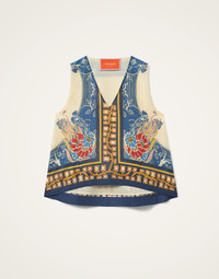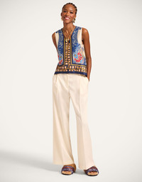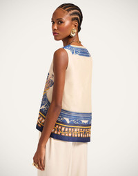 An LDJ Icon for its outrageous allure, we’ve reimagined our beloved La Scala shape with a classic V neck and super sumptuous linen-silk-organza blend for a crave-worthy new addition to your vibe-raising rotation. Its wide trapeze hem is perfect for layering over turtlenecks in the fall but we also adore it with the matching Hendrix Pants for your entrance-making moments. Details & Fit - Linen Silk Organza - V neck top - Trapeze shape - Sleeveless - Composition: 48% Linen 28% Cotton 24% Silk - Made in Italy - Garment length: 60cm - The model is 180 cm / 5′ 11″ tall and wears a size S