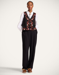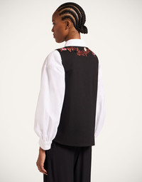 If you’ve been with us for a while you know (and, if you’re smart, likely own) the La Scala Top. We’ve reimagined this beloved La DoubleJ shape with a classic V neck version in this super versatile, structured embroidered punto milano. Its wide trapeze hem makes it perfect for layering, but we love it alone for a special evening out look no matter the season. Details & Fit - Jersey - V neck top - Trapeze shape - Sleeveless - Composition: 58% Viscose 35% Polyamide 7% Elastan - Made in Italy - The model is 180 cm / 5′ 11″ tall and wears a size S