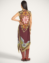 Hand-placed print? Check. Fringe? Check. Cool-as-all-get-out cap sleeve? Check. Modern, flattering, elegant but effortless, this beautiful bohemian dress ticks all our boxes. The drama is in the details with this one - every hem has a fringe embroidered into it. And that cheeky little slit up the asymmetrical hem? Scarf dressing has never been so sexy. Details & Fit - Silk scarf dress - Hits mid calf - Asymmetrical hem - Fringe along hems - Zip in back - 100% Made in Italy - Composition: 100% silk - The model is 177 cm / 5′ 9.7″ tall and wears a size S