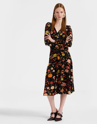 A deliciously theatrical silhouette, the Vaudeville is our favourite kind of midi - a little bit playful, a little bit sophisticated. Nipped and ruched at the waist she flatters all figures, and comes crafted in our stretchy Italian velvet with a modern, arrow sleeve that’s wide up top and cinched at the cuff. Stunning in all situations, we love her layered over a turtleneck at the office and alone with heels for your post-work aperitivo. Details & Fit - Stretch velvet - Midi Dress - Printed body - Solid black back and sleeves - Hits below the knee - No pockets - 100% Made in Italy - Composition: 85% Polyamide 15% Elastane