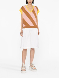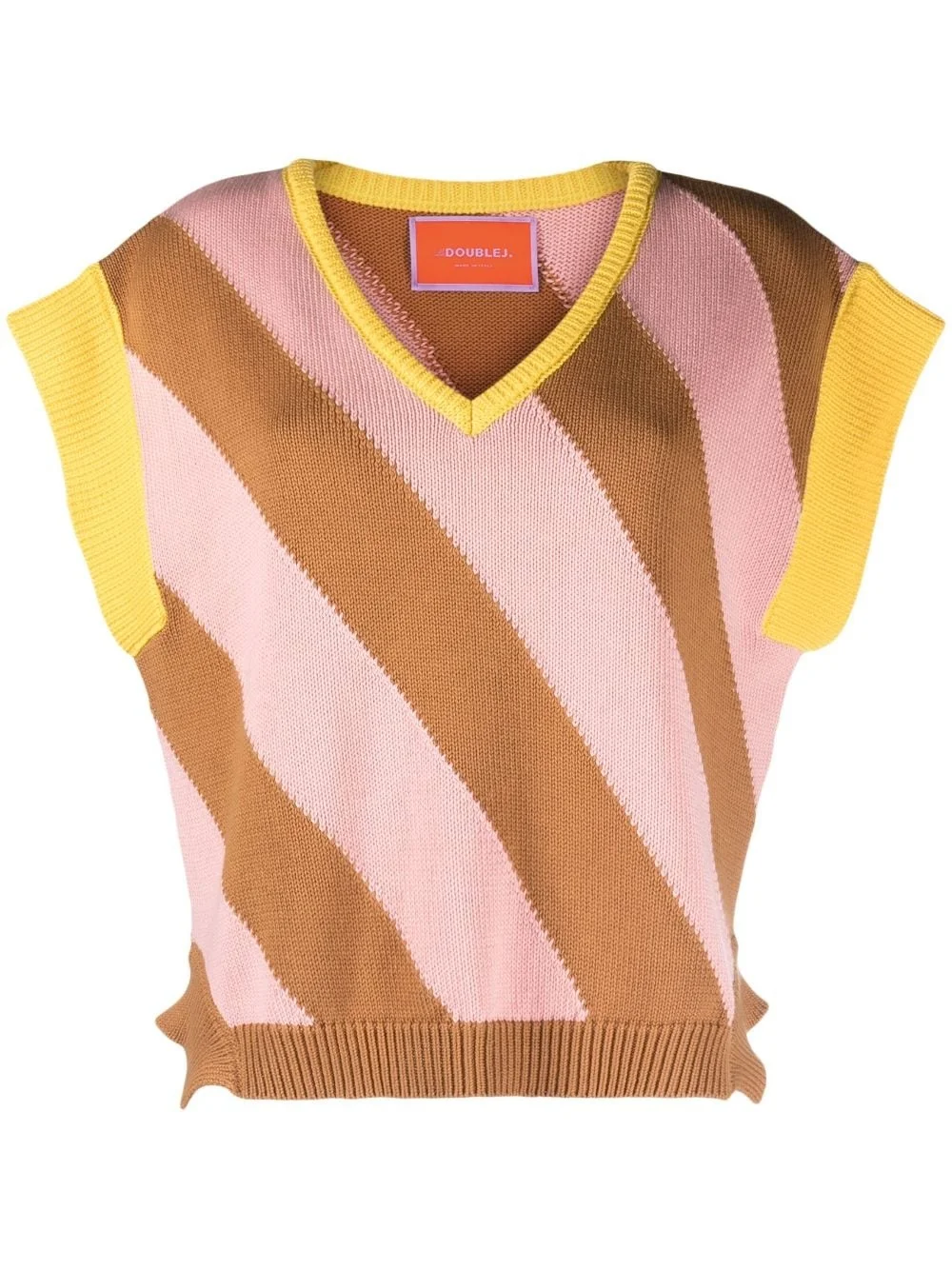 Veneziana knitted vest La DoubleJ elevates its best-selling Argyle Gilet jumper for Italy's most opulent city with this Veneziana knitted vest. Presented in dusty pink diagonal stripes, it is further enhanced with short side slits. Highlights - Dusty pink - Cotton - Knitted construction - Diagonal stripe pattern - V-neck - Sleeveless - Short side slits - Straight hem Made in Italy Composition Cotton 100% SIZE & FIT Model measurements Height 5 ft 10 in(1.78 m) Bust/Chest 29.92 in(76 cm) Hips 34.64 in(88 cm) Waist 23.62 in(60 cm) FittingInformation Designed to be unstructured, offering a loose fit throughout Made with a midweight knit, this piece offers some stretch This piece fits true to size – take your usual size