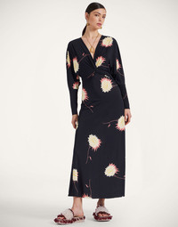 A dress so fabulously feminine we had to give it a chromosomal appropriate title. Crafted from our flowy Italian jersey, her long sleeves and slinky, floor-length skirt bounce with your every strut, ensuring you make an entrance no matter the occasion. Her sexy slit up the front means she makes for a seriously saucy night out look, but we love her over trousers as a chic layering look. Details & Fit - Long arrow sleeves cinched at the cuff - Slit up the skirt - Twisted detail at waist. - Open V neck - 100% Made in Italy - Composition: 92% Viscose 8% Elastane - The model is 180 cm / 5′ 11″ tall and wears a size S
