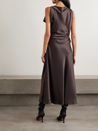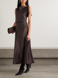 Easy sophistication underscores La Ligne's collections, so the quiet confidence of this maxi dress comes as no surprise to loyal fans. It's cut from smooth, lustrous satin, which is gathered and draped across the asymmetric profile. Complement the 'Chocolate' shade with gold jewelry.