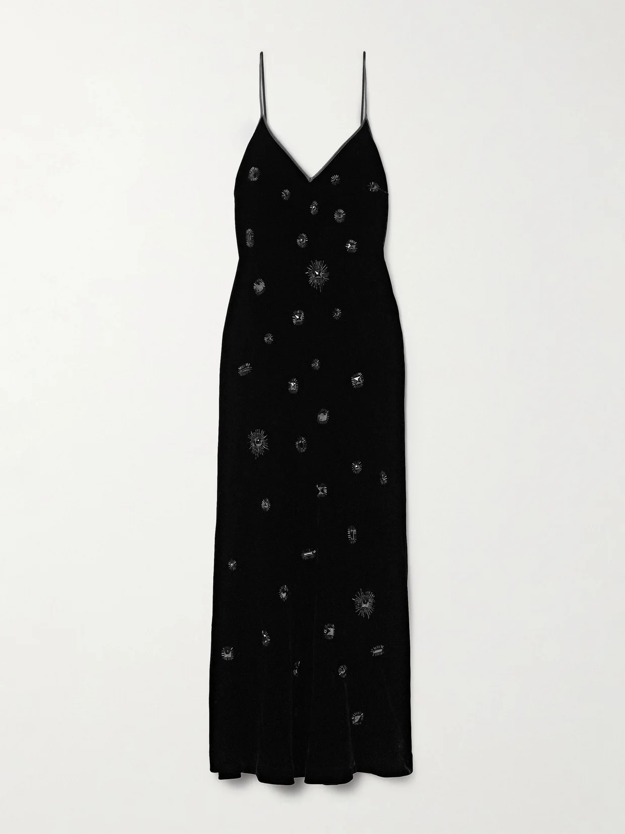 La Ligne's streamlined midi dress is artfully accented with crystal and bead embellishments. It's cut from plush velvet and has slim adjustable straps and tonal silk-satin trims along the neckline.