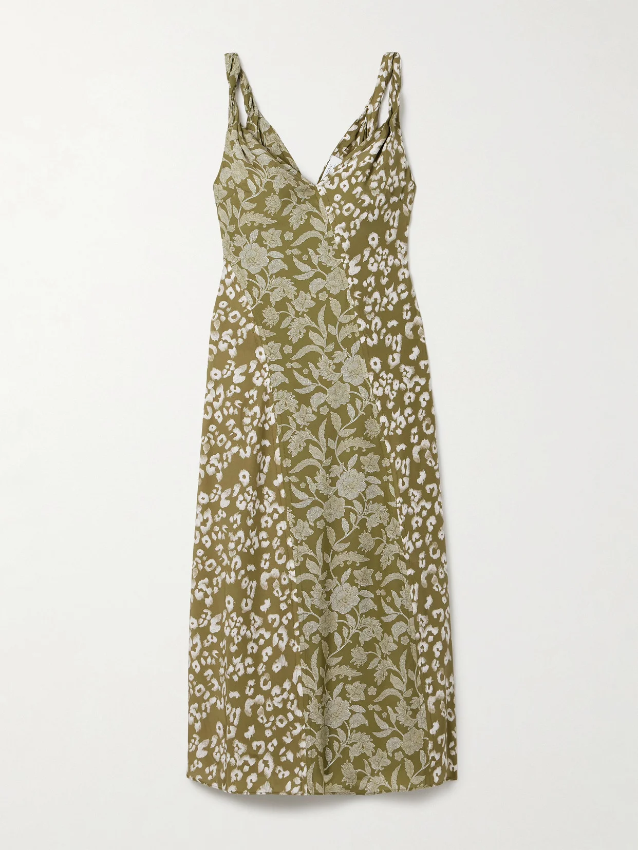 La Ligne's dress is made from asymmetric panels of fluid silk-charmeuse printed with contrasting floral and leopard-print patterns. It's cut for a close fit and has twisted shoulder straps.