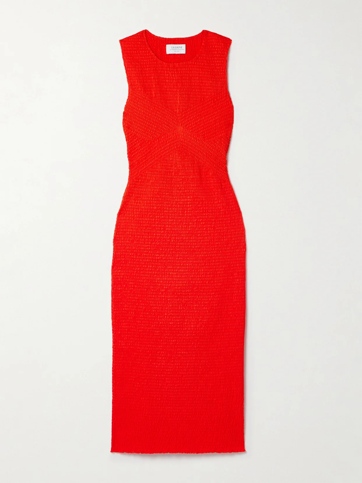 La Ligne's midi dress is strategically shirred throughout, ensuring it hugs your figure in all the right places. It's cut from 'Vermillion' cotton-twill and has a close, comfortable fit. Accessorize with a simple clutch and mules.