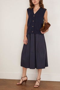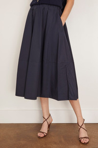 The Labo.Art Gonna Gea Clara is a timeless addition to your wardrobe. This midi skirt features an a-line silhouette with an elastic waistband for ease. Wear yours with a t-shirt and flats. FIT DESCRIPTION MODEL MEASUREMENTS - Fits true to size, take your normal size - Midi length - A-line silhouette - Relaxed fit - High rise - Elastic waistband - 100% Cotton - Mya is wearing a size 0/ XS - Bust: 32" - Waist: 25" - Hips: 34" - Height: 5’9"