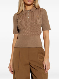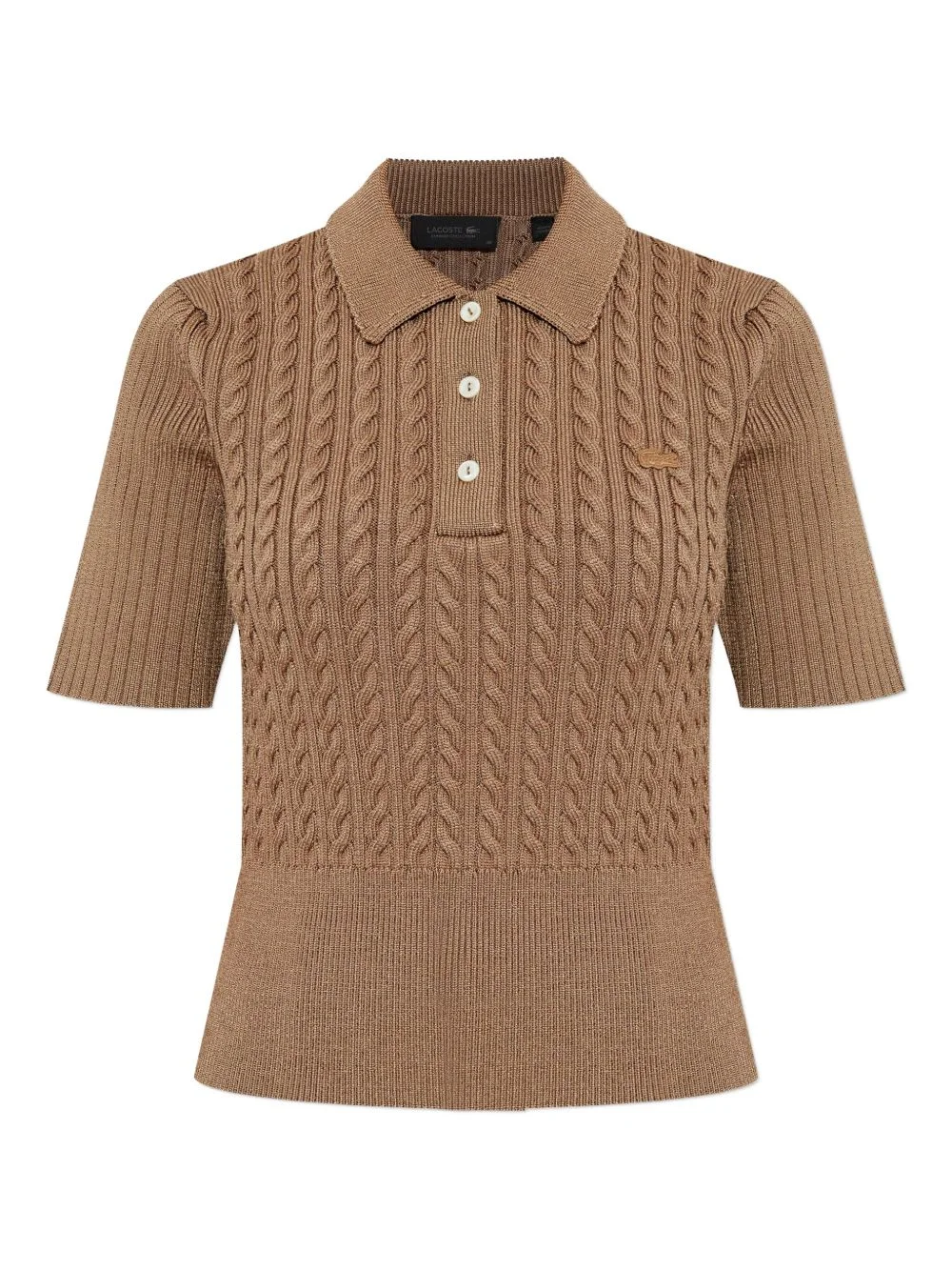 cable-knit polo shirt Highlights - Light brown - Cable knit - Ribbed hem - Short sleeves - Button fastening - Polo collar Made in Italy Composition Viscose 83%, Polyamide 17% Washing instructions Read Manufacturer Guidelines