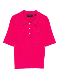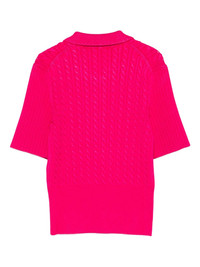 cable-knit polo top Highlights - Pink - Cable knit - Front button fastening - Short sleeves - Polo collar - Logo detail Imported Composition Rayon 83%, Polyamide 17% Washing instructions Read Manufacturer Guidelines