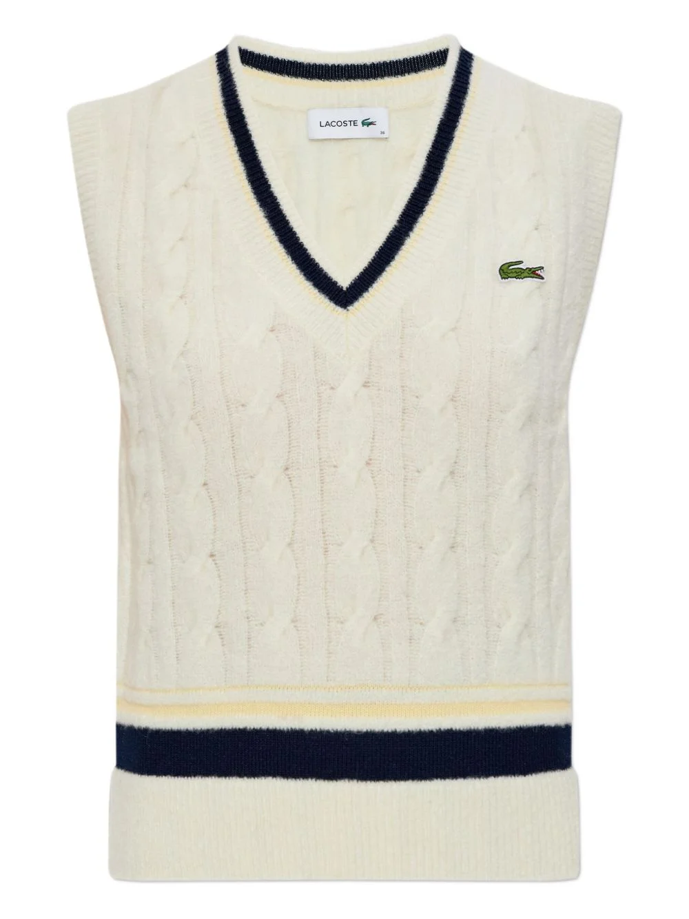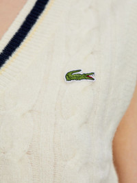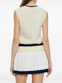 cable-knit v-neck top Highlights - Off-white - Cable knit - V-neck - Striped hem - Sleeveless - Logo patch Imported Composition Wool 80%, Polyamide 18%, Spandex/Elastane 2%