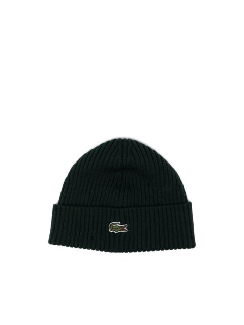 Crocodile-patch wool beanie black wool ribbed knit logo patch to the side Made in France Composition Wool 100% SIZE & FIT Measurement CIRCUMFERENCE 18.11 in(46 cm) Washing instructions Machine Wash