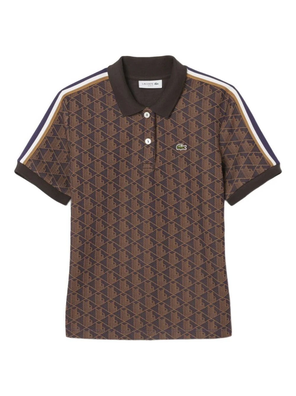 geometric-pattern polo top Highlights - Brown - Geometric pattern - Short sleeves - Polo collar Imported Composition Cotton 100%, Recycled Polyester 100% Washing instructions Read Manufacturer Guidelines