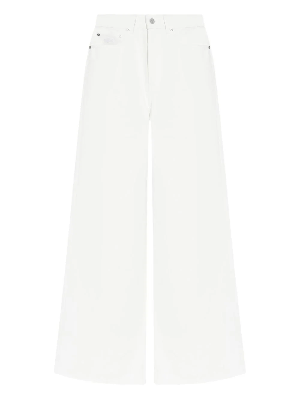 flared trousers Highlights - White - Front button and zip fastening - Classic five pockets - Leather tag - High-waisted Imported Composition Outer: Cotton 100% Lining: Polyester 65%, Cotton 35%