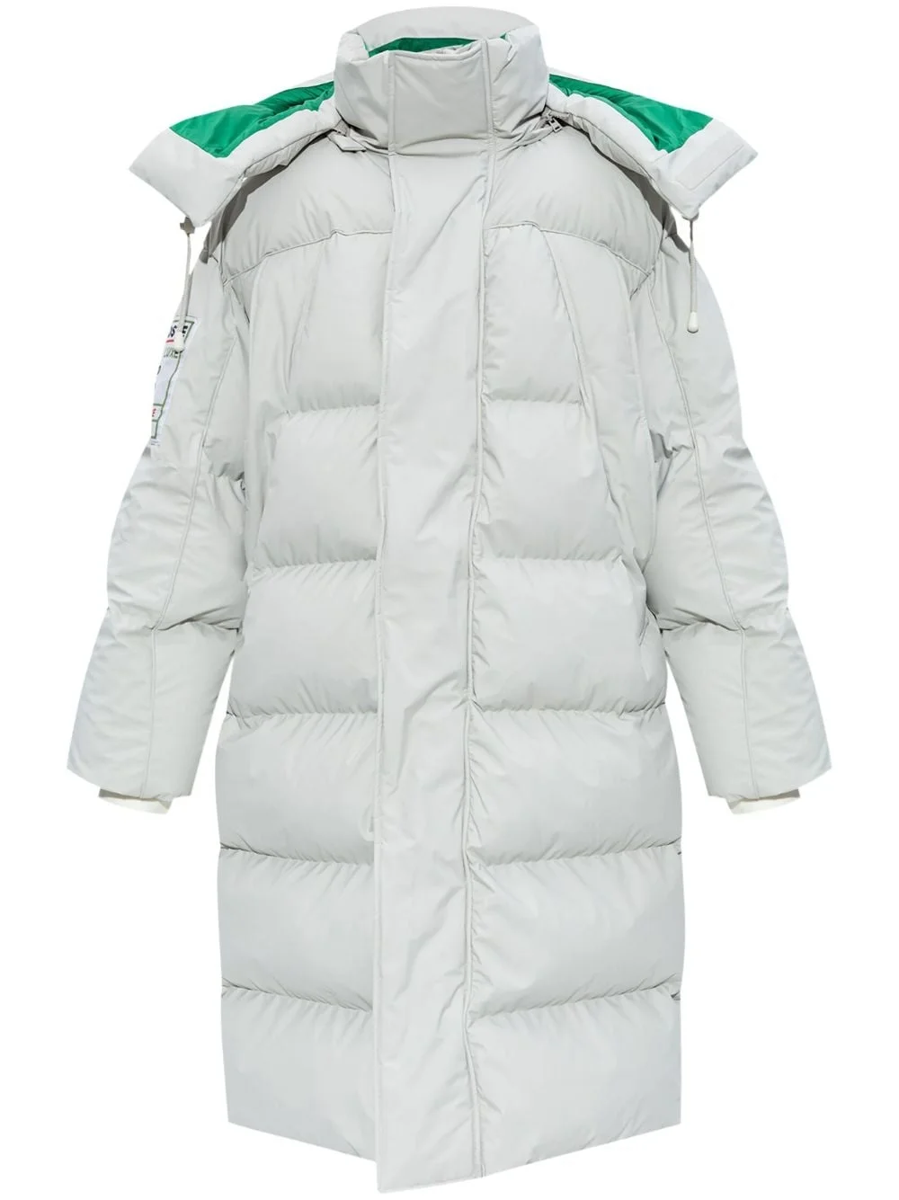 hooded padded coat Highlights - Grey/green - Padded design - Quilted - Front zip fastening - Drawstring hood - Long sleeves - Logo patch at the sleeve - Contrast lining Imported Composition Outer: Nylon 100%, Polyester 90%, Polyamide 8%, Elastane 2% Lining: Polyester 100% Washing instructions Read Manufacturer Guidelines
