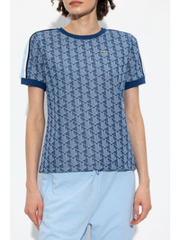 jacquard monogram T-shirt Highlights - Blue - Cotton blend - Monogram jacquard - Crew neck - Side stripe detailing - Applique logo - Straight hem Imported Composition Polyester 59%, Cotton 38%, Polyamide 3%