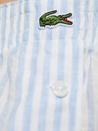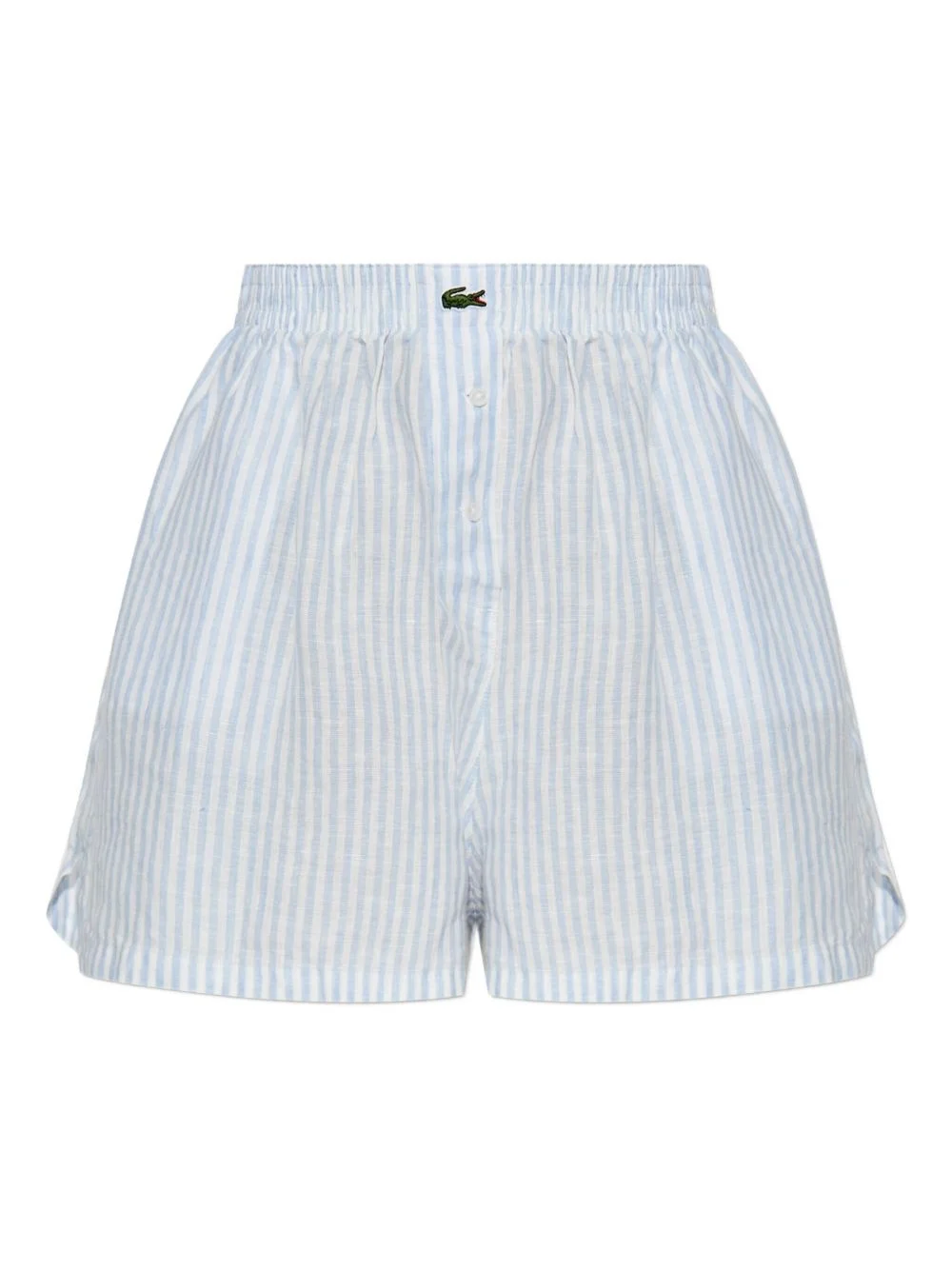 linen shorts Highlights - Light blue - Elasticated waistband - Two side slit pockets - Vertical stripe pattern - Logo patch to the front Imported Composition Linen/Flax 100% Washing instructions Read Manufacturer Guidelines