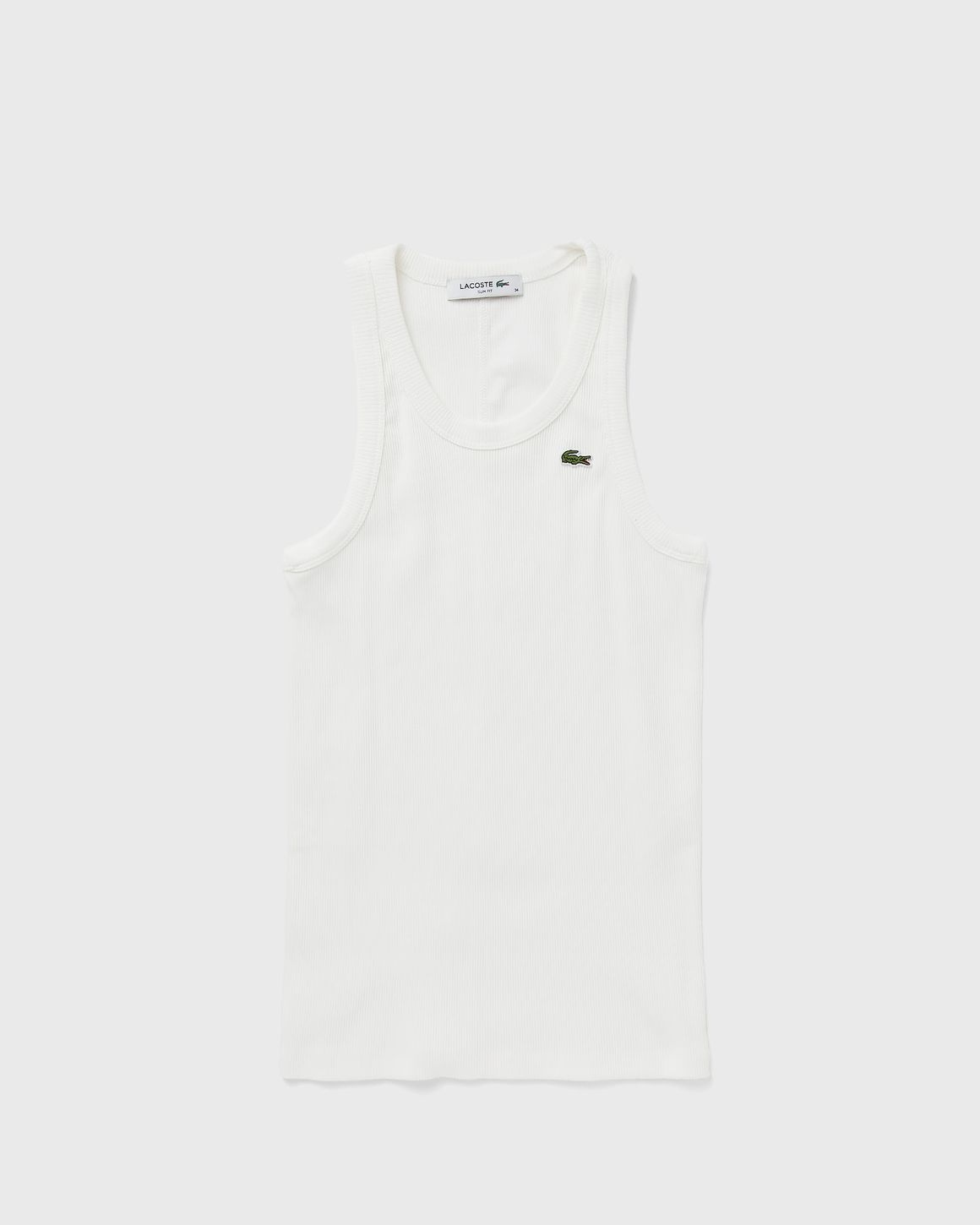 The Lacoste tank top has a close-fitting cut for optimum freedom of movement. A crocodile appliqué on the chest rounds off the design. - Tailored cut - Tubular knit - Crocodile appliqué Article Number: TF5388-70V Gender: Women Color: Flour Material: 100% Cotton