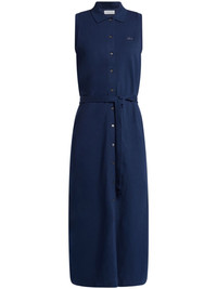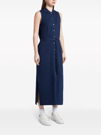 logo-patch cotton dress Highlights - Navy blue - Cotton - Side slits - Logo patch at the chest - Round neck - Front button fastening - Front tie fastening - Sleeveless - Straight hem - Mid-length Imported Composition Cotton 94%, Spandex/Elastane 6% SIZE & FIT FittingInformation Designed for a slim fit that sits just away from the body offering a close yet comfortable fit The belt offers adjustability for fitted preferences Made with a midweight knit, this piece offers some stretch